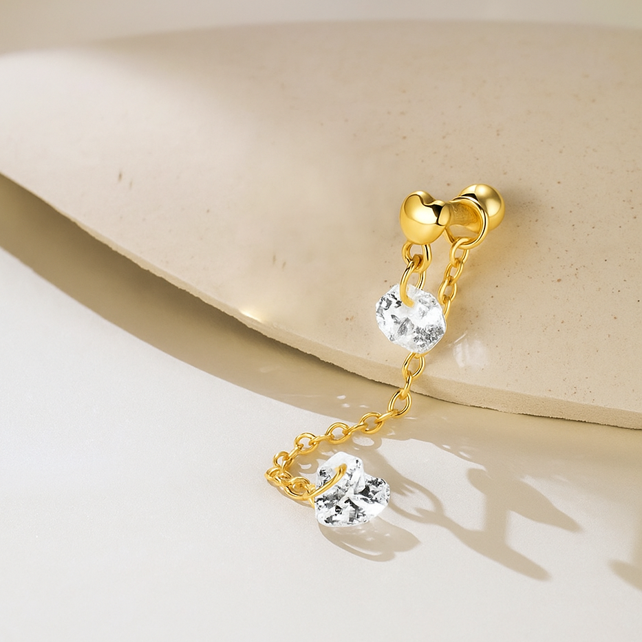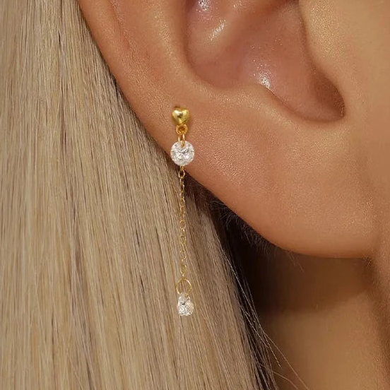 Elisande incarne l'essence de la joaillerie contemporaine avec ses boucles d'oreilles en argent sterling 925. Chaque pièce présente un pendentif en zircon de haute qualité suspendu à une chaîne délicate, créant une harmonie entre structure et mouvement. Les zircons, sélectionnés pour leur brillance cristalline, offrent un éclat comparable aux diamants tout en conservant une accessibilité remarquable. Le travail artisanal de l'argent garantit une durabilité et une pureté exceptionnelles. Ces boucles s'adaptent à tous les styles, du plus épuré au plus affirmé, et constituent un investissement judicieux en matière d'accessoires intemporels et polyvalents.