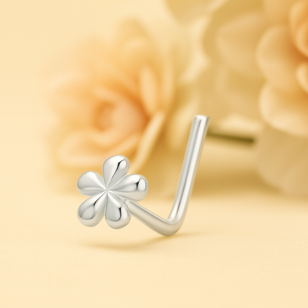 Piercing nez en argent 925 aux lignes épurées, orné d'une délicate fleur. Ce bijou intemporel allie élégance minimaliste et raffinement, parfait pour sublimer votre regard au quotidien. Hypoallergénique et durable, il s'adapte à tous les styles avec discrétion et charme.