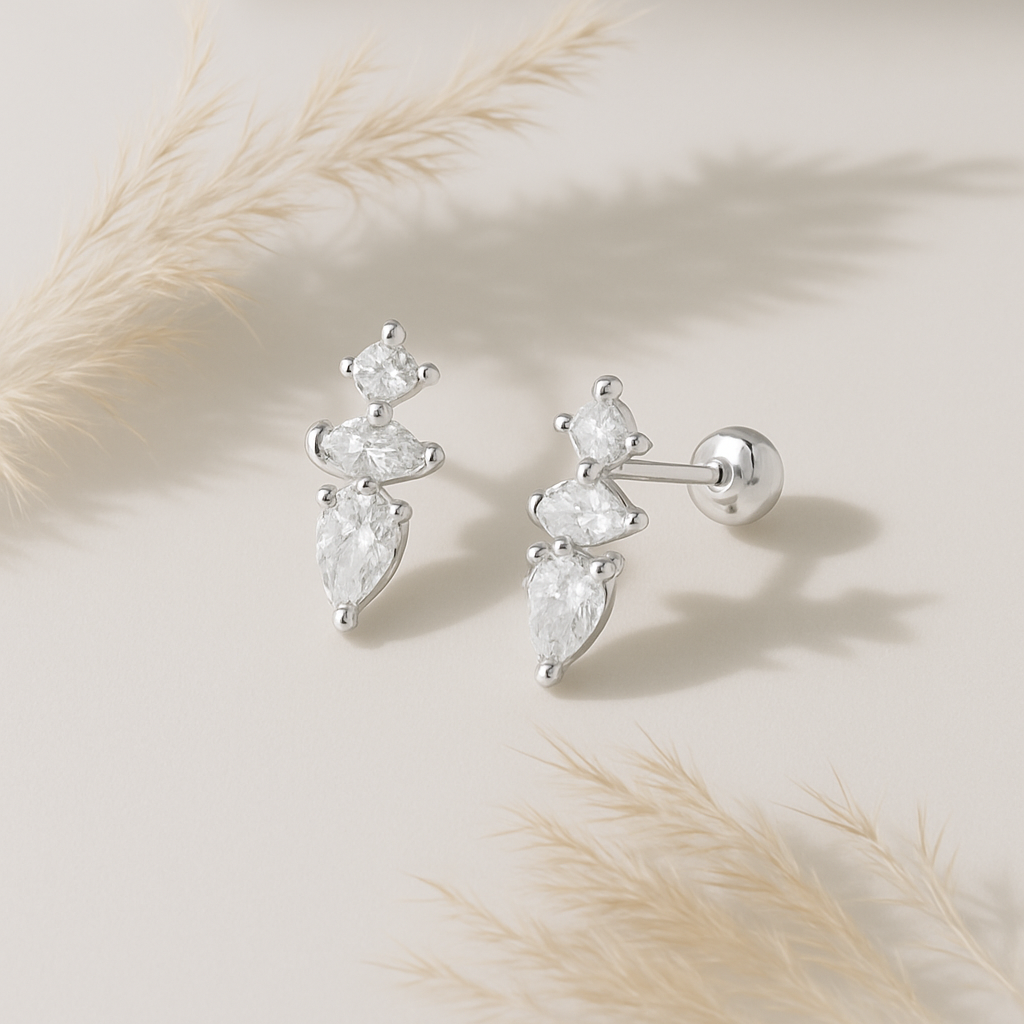 Boucles d'oreilles puces en argent sterling 925, plaque or 18k conçues pour les femmes en quête d'élégance intemporelle. Ces créoles ornées de diamants en forme de goutte d'eau offrent un scintillement subtil et raffiné. Dotées d'un système de fermeture à vis sécurisé, elles garantissent une tenue optimale tout au long de la journée. Le poli brillant met en valeur la pureté de l'argent 925, tandis que les pierres serties apportent une touche de sophistication. Parfaites pour les occasions spéciales ou le port quotidien, ces boucles allient qualité artisanale et design contemporain.