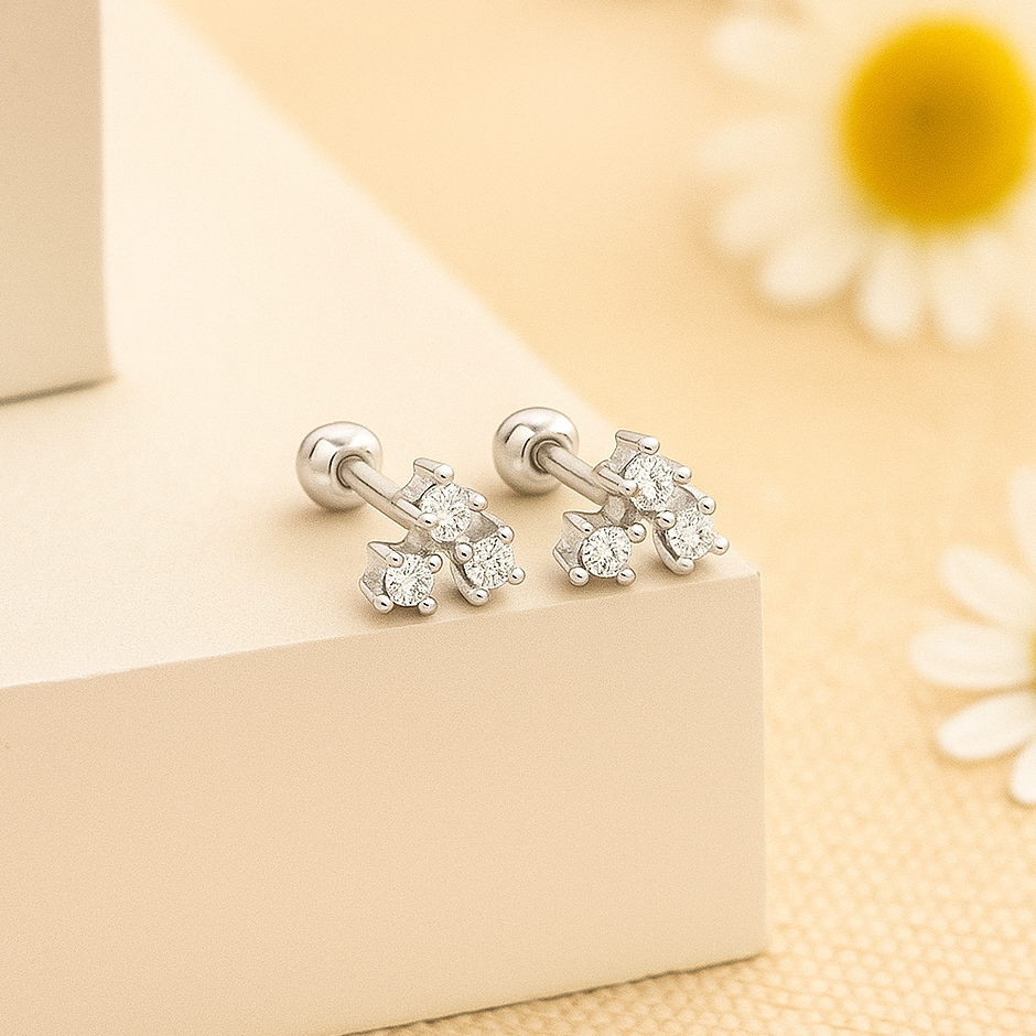 Ces boucles d'oreilles Célestine en plaqué or 18 carats et en argent 925 sont à la fois élégantes et durables. Leur design unique permet de les utiliser comme piercing avec leur fermoir à vis, offrant sécurité et confort. Un ajout parfait à n'importe quelle tenue.